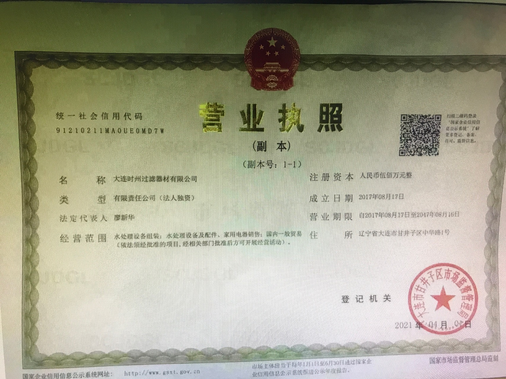 营业执照注册号: