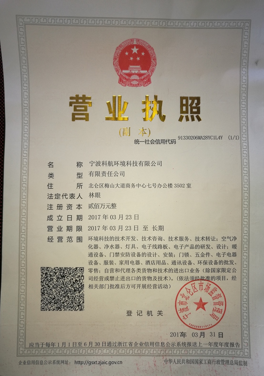 营业执照注册号: