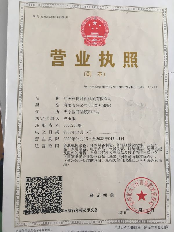 江苏蓝博环保机械有限公司 地址: 天宁区郑陆镇和平村 技术支持: