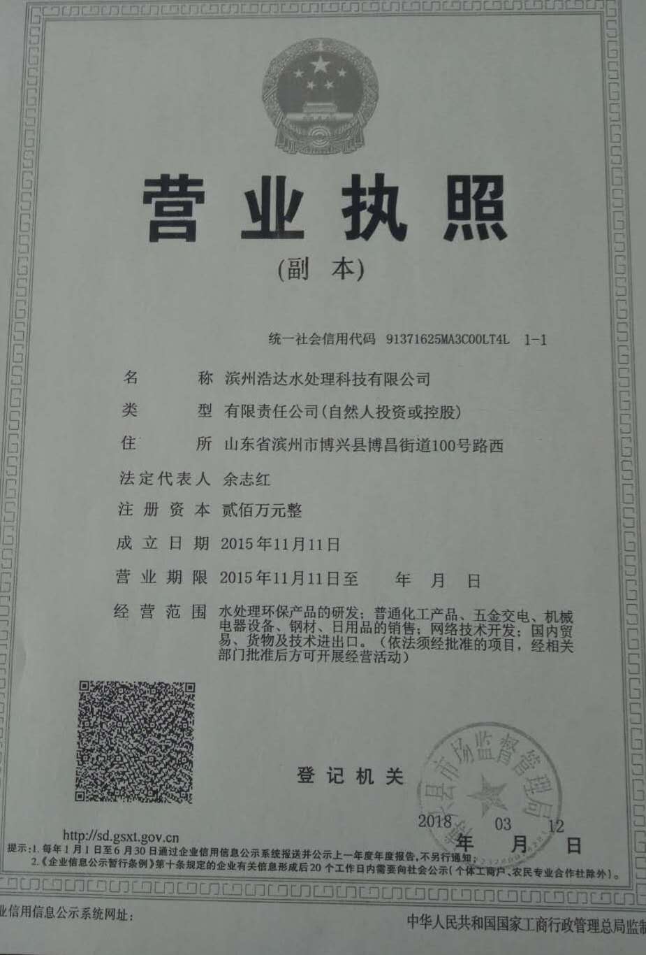 滨州浩达水处理科技有限公司 地址: 山东滨州市博兴县胜利三路219号供销社 技术支持: